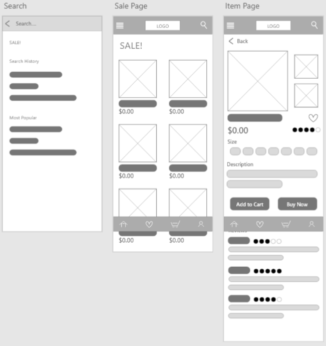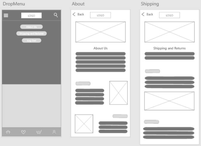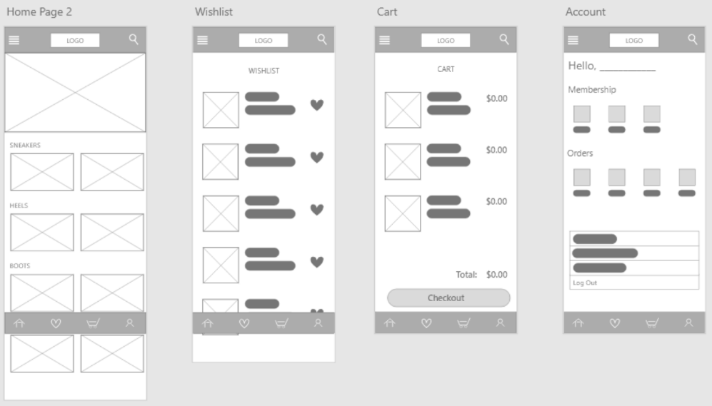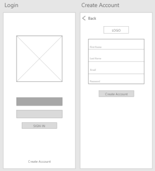 Wireframes were developed on Adobe XD after creating sketches of the envisioned app design. These wireframes would give me an idea of what the app layout would look like, and how I would make changes in order to make the design more user friendly and accessible. User testing of these wireframes would also assist in the further development of the final design.